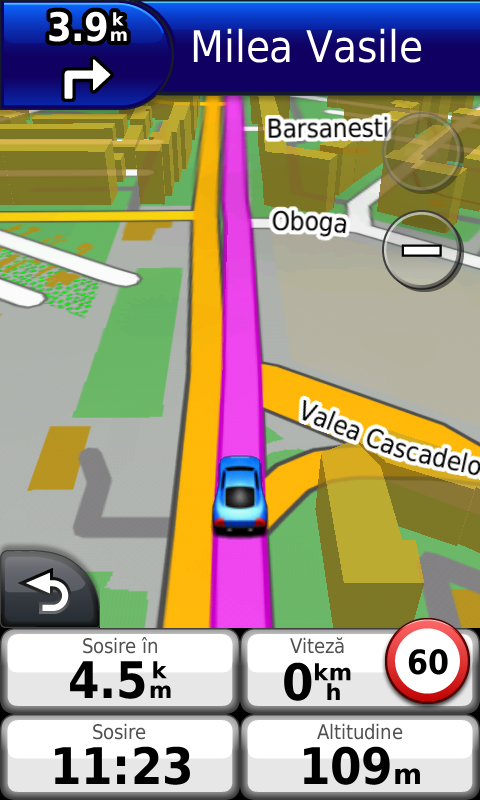 In primul rand, limitarile de viteza sunt afisate impreuna cu viteza curenta. Restrictiile de manevra sunt afisate impreuna cu distanta pana la urmatoarea schimbare de directie. Cladirile in format 3D.