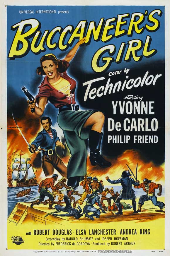 -------------------------------------------------------------------- General Information: -------------------------------------------------------------------- Release Title ........: Buccaneer's Girl Year ....................: 1950 Genre ..................: Action | Adventure | Comedy Language.............: English File size ...............: 718 MB Duration ...............: 1h 16mn 53s Overall Bit rate .....: 1306 Kbps Source .................: DVD -------------------------------------------------------------------- Video Information: -------------------------------------------------------------------- Codec ID.............: XviD Video Bitrate.......: 1166 Kbps Resolution...........: 720x400 Frame rate..........: 23.976 fps -------------------------------------------------------------------- Audio Information: -------------------------------------------------------------------- Audio Format.........: MP3 Bit rate ..................: 128 Kbps Channels ...............: 2 channels Sampling rate ........: 44.1 KHz -------------------------------------------------------------------- Subtitle: -------------------------------------------------------------------- Cast: -------------------------------------------------------------------- Yvonne De Carlo ... Deborah McCoy Philip Friend ... Frederic Baptiste Robert Douglas ... Narbonne Elsa Lanchester ... Mme. Brizar Andrea King ... Arlene Villon Norman Lloyd ... Patout Jay C. Flippen ... Jared Hawkins Henry Daniell ... Captain Duval Douglass Dumbrille ... Captain Martos Verna Felton ... Dowager John Qualen ... Vegetable Man Connie Gilchrist ... Vegetable Woman -------------------------------------------------------------------- Robin Hood-like pirate Baptiste takes only the ships of rich but wicked trader Narbonne. Fun loving Debbie, a passenger from his latest prize, stows away on the pirate ship and falls for the pirate; later, having become a New Orleans entertainer, she meets his alter ego, who's engaged to the governor's daughter. Sea battles and land rescues follow in lighthearted style. --------------------------------------------------------------------